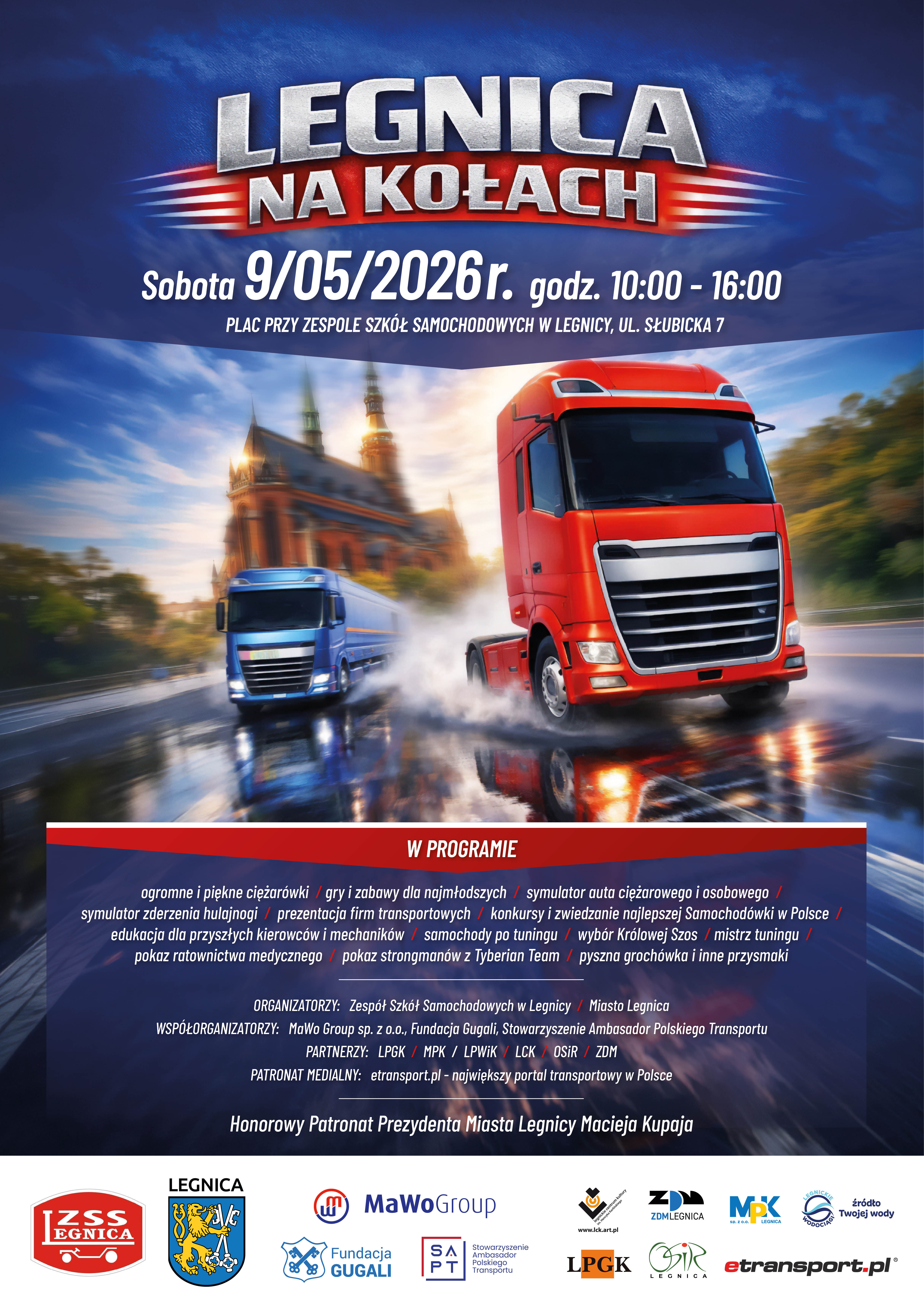 Wydarzenie odbywa się pod honorowym patronatem prezydenta miasta Maciej Kupaj i jest współorganizowane m.in. przez MaWo Group oraz Stowarzyszenie Ambasador Polskiego Transportu. Jak podkreśla Mariusz Frąc, inicjatywa ma na celu nie tylko promocję branży, ale także realne wsparcie w kształtowaniu przyszłych kadr transportu. W praktyce oznacza to połączenie funkcji edukacyjnej, rekrutacyjnej i biznesowej w jednym wydarzeniu, co na polskim rynku, szczególnie w formule organizowanej przez szkołę branżową, pozostaje rozwiązaniem unikalnym.